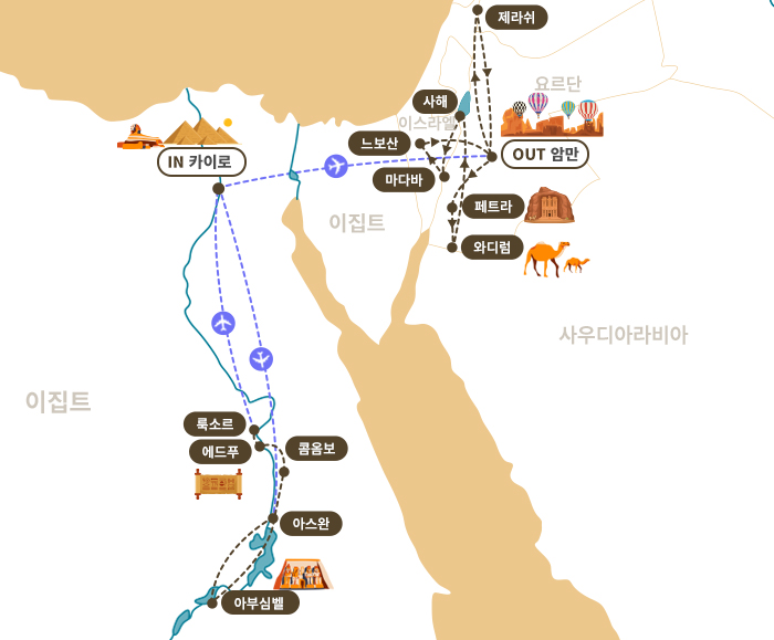 √ 이집트 & 요르단 상품 핵심 포인트 √ 항공 ■ 에미레이트(Emirates) 항공 비즈니스석 탑승 <인천-두바이-카이로/암만-두바이-인천 왕복 탑승>▨ 해당 상품은 에미레이트 항공 비즈니스 단체석으로 진행하오며,지방 내항기 연결 (김해/대구) 불가합니다▨ 비즈니스 단체 보유석 소진 후 추가 예약 고객님이신 경우 실시간 항공으로 예약 시점에 따라서 상품가로 변동될 수 있습니다.▨ 대한항공 마일리지 전환시 적립 가능 (여행종료후 대한항공 홈페이지 개별로 신청 요망)▨ 단체 아랍에미레이트 항공 비즈니스 항공권은 사전 좌석 지정이 불가하며, 발권후 배정되어 있는 좌석은 항공사에서 임의대로 지정한 것이며,항공 좌석 만석등의 경우 일행과 떨어진 좌석을 변경될 수 있음을 양해 부탁드립니다 ▨ 쇼퍼 서비스(운전사)는 단체 비즈니스 발권 후 에미레이트 항공사 공식 홈페이지 개별 신청이 가능합니다 ▨ 단체 비즈니스 선발권 후 개인 사유로 취소시 취소료 발생 됩니다 ■ 현지 항공 이동 3회 (일반석) ▨ 이집트, 암만 관광 최적의 동선(차량이동 구간 최소화) ▨ 카이로/룩소-아스완/카이로, 카이로-암만 구간 항공 이동 (일반석) ▨ 중간 항공 발권 후 환불 불가한 티켓입니다 √ 호텔 ▨ 월드체인 특급호텔 ▨ 아스완 연박 2박, 사해 1박 여유로운 일정 ▨ 와디럼 럭셔리 캠프 1박 숙박 ※ 5성이라도 같은 5성이 아닙니다. 품격의 차이를 느껴보세요 (Four Seasons Hotel Cairo at First Residence,Fairmont ,Movenpick, Hilton,Royal Maxim Palace kempinski 등 체인 호텔 투숙) √ 핵심 관광지■ 이집트 관광지◐ 이집트의 수도 카이로◑▨ 투탕가멘의 가면 소장되어 있는 『이집트 고고학 박물관 (내부)』 ▨ 이집트 카이로의 새로운 랜드마크 『 그랜드 이집트 뮤지엄 Grand Egyptian Museum(내부)』▨ 피라미드의 수호신 거대한 자연석을 깎아 만든 『스핑크스』▨ 헤롯왕으로부터 아기예수가 피난하였다고 알려진 『성 세르기우스와 바커스의 교회(내부)』▨ 모세가 이집트를 떠나기전 기도를 올렸던 모세기념교회 『벤 에즈라 시나고그(내부)』◐ 거대한 야외 박물관 룩소르◑▨ 투탕카멘 왕의 유적이자 이집트의 여러 왕과 여왕들이 묻혀 있는 『왕들(왕가)의 계곡』▨ 최초의 파라오 하트셉수트 여왕이 건설한 『하트셉수트 여왕 신전(내부)』▨ 람세스 2세에 의해 건설된 이집트 최대의 신전 『카르나크 신전(내부)』▨ 이집트의 고대 신 아몬을 기리기 위하여 아멘호텝 3세가 건설된 『룩소르 신전(내부)』◐ 이집트 최남단의 도시 아스완◑▨ 이집트 제 5대의 여왕 하트셉수트를 위해 만들었으나 균열로 인해 세워지지 못한 『미완성된 오벨리스크』▧ 높이 111M, 제방 길이 3.6KM로 세계 최대의 록필 댐인 『아스완 하이댐, 나세르 호』◐ 위대한 파라오 람세스2세의 걸작 아부심벨◑▧ 이집트 19왕조 람세스 2세에 의해 건립된 『아부심벨 신전(아부심벨 대신전, 하토르 소신전)』 ◐ 고대 신들의 도시 콤 옴보, 에드푸◑▨ 악어 머리의 신 세비크와 매의 머리를 가진 호루스 신을 모신 『콤 옴보 신전(내부)』▨ 매의 머리를 가진 호루스 신을 봉헌하는 『에드푸 신전(내부)』 ■ 요르단 관광지 ◐ 붉은 장미의 전설 속 고대 도시 페트라◑▨ BBC가 선정한 죽기 전에 꼭 가와야 하는 바로 그 여행지!시크길, 알 카즈네 신전, 원형극장, 왕들의 무덤, 나바티안 유적』◐ 아라비아 로렌스의 배경이었던 붉은 사막 와디럼 ◑▨ 영화 <아라비안 로맨스>,<마션><듄> 속 배경으로 유명한 『와디럼 사막의 지프 투어 체험 』▨ 아름다운 별빛속에서의 캠프파이어와 『와디럼 캠프 체험』 ◐ 지구상에서 가장 낮은 곳에 있는 바다 사해(DEAD SEA) ◑▨ 사해에서만 경험 할 수 있는 독특한 『부영 체험(개별진행) 』◐ 모자이크 예술과 관련된 유산으로 유명한 마다바 ◑▨ 비잔틴 시대의 모자이크 지도로 유명한 『성조지성당(내부), 마다바 지도 』◐ 로마 시대의 무역 도시 제라쉬 ◑▨ 『하드리아누스 황제 개선문,제우스 신전 』◐ 요르단의 수도 암만 ◑▨ 암만의 대표적 고대 유적지 『암몬성(헤라클레스 신전, 로마 유적지) 』 √ 식사■ 이집트 대표 식당에서의 전통식 및 현지식 제공■ 이집트 피라미드뷰 레스토랑 특식 ■ 카이로 포시즌 호텔 BBQ 특식 (타사 비교 필수) ■ 필레 신전뷰 레스토랑 특식 ■ 이집트 대표 음식 지중해연안의 해산물요리, 이집트전통 코샤리 풀메다메스, 양갈비 구이 등 √ 기타■ 한진관광 전문 투어 리더 동행■ 가이드/기사 경비 120 USD 상당 금액 포함■ 관광 시 40~45인승 차량 탑승■ 현지 사정에 따라 숙박 도시의 순서 또는 주변의 다른 도시로 변경 될 수 있습니다.■ 일정표에 사용된 이미지는 모두 예시 이미지 입니다.■ 예약 신청금 1인 400만원씩 2일 이내로 입금 시 예약 확정됩니다 .■ 여행잔금은 출발 30일전 까지 진행해주시기 바랍니다■ 가이드의 알찬 설명을 위한 개인용 수신기 제공