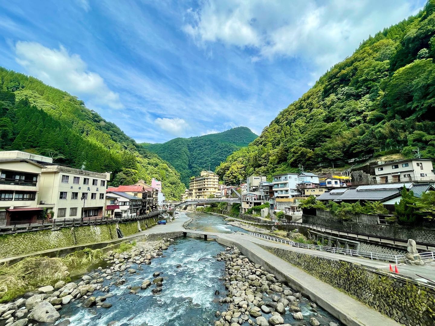 강가에 자리한 온천 소도시 쿠로카와로 이동하여 (약 30분 소요)